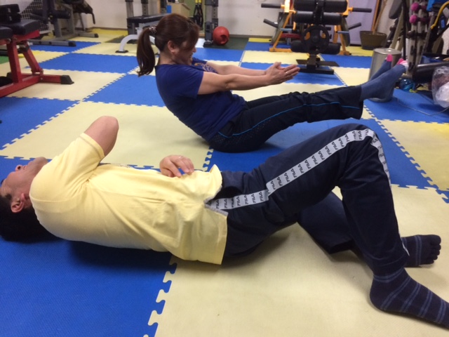 こちらはご夫婦で腹筋中!
