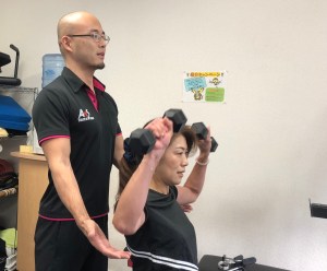 動きを診て身体に必要なケアやアドバイス等を行いながらトレーニングを進めていきます